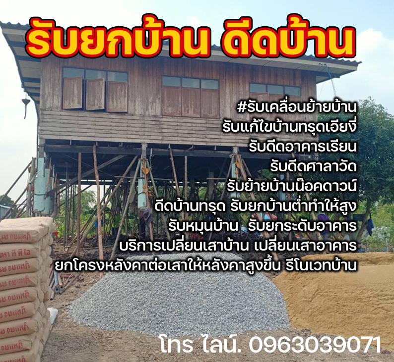 ช่างยกบ้าน... 0963039071 บริการดีดบ้านขึ้นให้สูง ย้ายตำแหน่งบ้าน